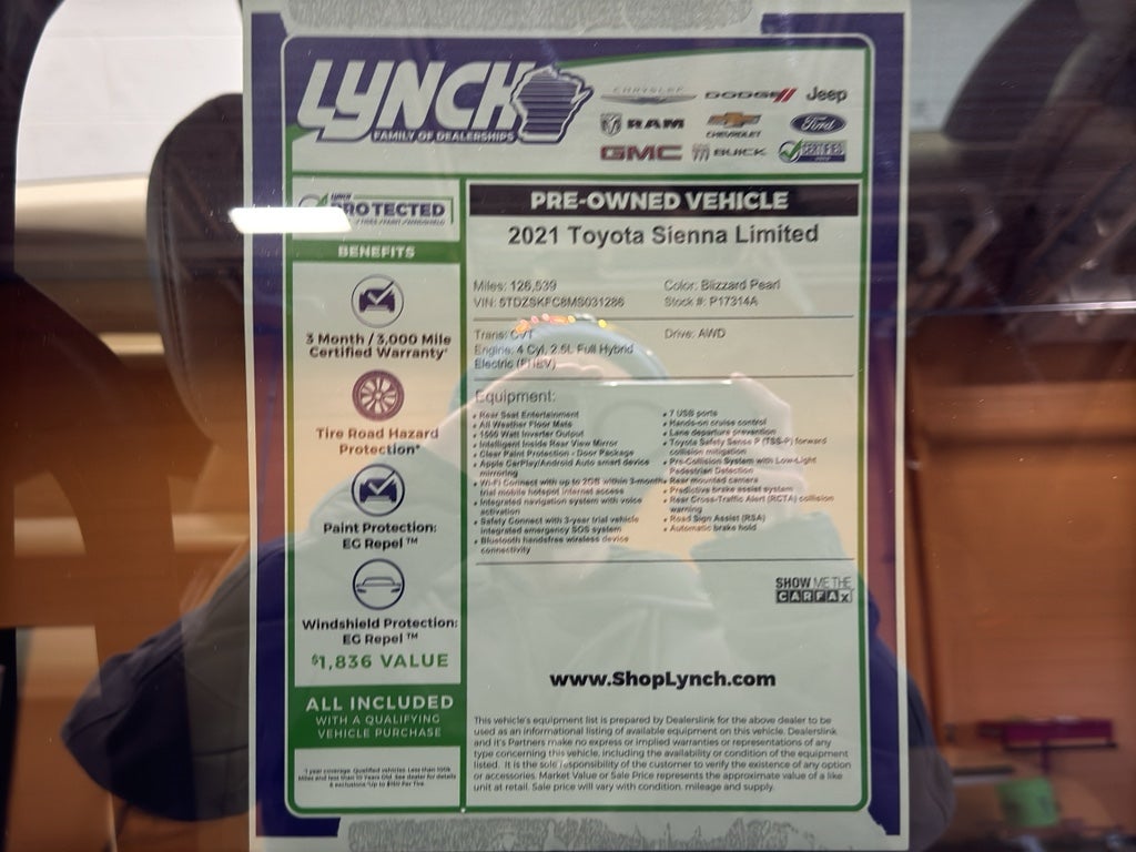 Experience premium family driving with this 2021 Toyota Sienna Limited AWD, a refined hybrid minivan combining efficiency, versatility, and upscale comfort. Located in Burlington, WI, this Toyota Sienna features a responsive 4-cylinder 2.5L Full Hybrid Electric (FHEV) powertrain that delivers excellent fuel economy without sacrificing performance—perfect for daily commutes, road trips, and Wisconsin winters thanks to its confident all-wheel-drive system.