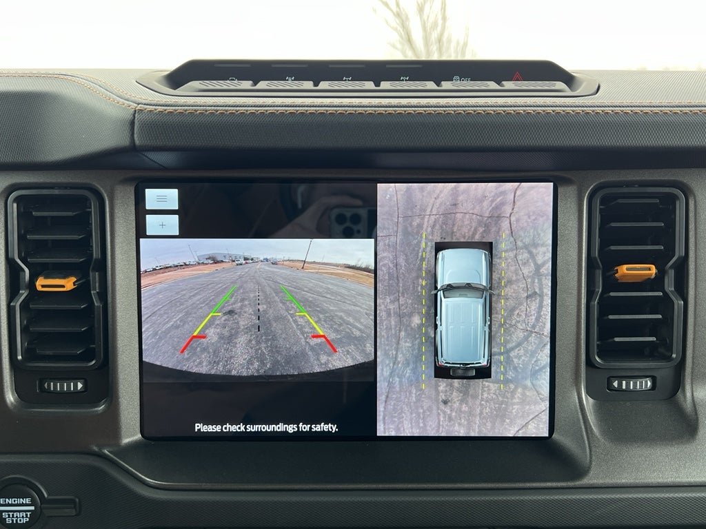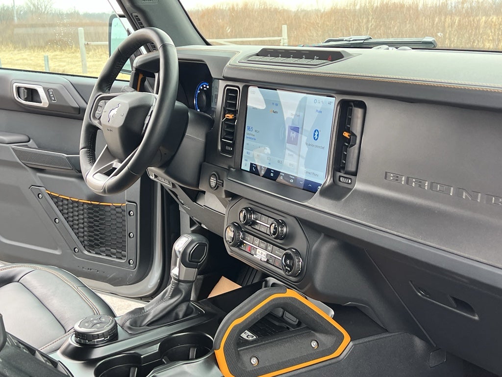 Equipment Group 334A High/lux Package: Rear Parking Sensors; Power Outlet - Back Side of Center Floor Console; Auto-Dimming Interior Rearview Mirror; Driver and Front Passenger Illuminated Sliding Visor Vanity Mirrors; Evasive Steering Assist; Heated Steering Wheel; Additional Sound Deadening; Information on Demand Panel; Wireless Charging Pad; Dual-Zone Electronic Automatic Temperature Control; Ambient Footwell Lighting; Remote Start System; 2-Door Intelligent Access with Lock/unlock; 17" Machined Carbonized Aluminum Wheels; Dual Smart Charging USB Ports; Front Row Heated Seats; Adaptive Cruise Control; B&O Sound System by Bang and Olufsen; Front Parking Sensors; 360-Degree Camera; LT285/70R17 A/T Tires; Universal Garage Door Opener; Sideview Mirrors. Ford Co-Pilot360: Auto High-Beam Headlamps; Rear View Camera; Pre-Collision Assist with Automatic Emergency Braking; Blind Spot Information System (BLIS); Lane-Keeping System. Sasquatch Package with Non Beadlock Capable Wheels: High Clearance Fender Flares; High Clearance Suspension; Position-Sensitive Bilstein Shock Absorbers. Leather-Trimmed/vinyl Bucket Seats. Carbonized Gray Molded-In-color Hard Top. **Equipment listed is based on original vehicle build and subject to change. Please confirm the accuracy of the included equipment by calling the dealer prior to purchase.**